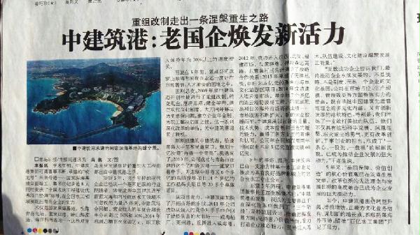 近日,《青岛日报》二版以《中建筑港:老国企焕发新活力》为题,大篇幅报道了中建筑港重组成立5年以来,取得的骄人业绩。